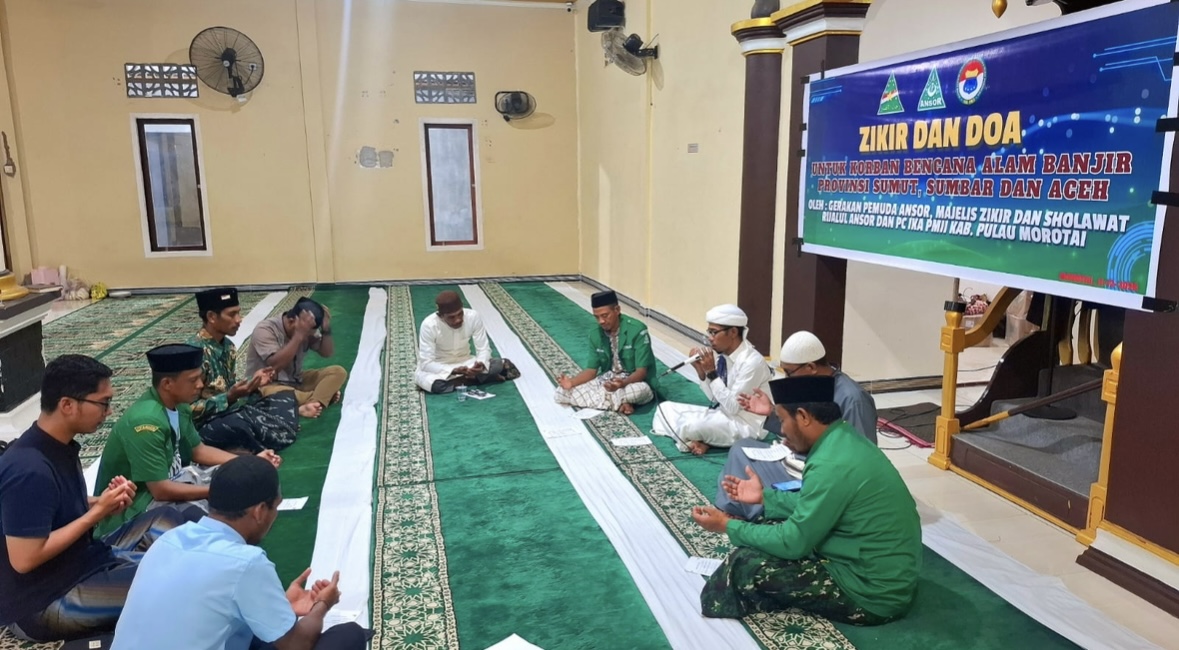 Tandaseru – Gerakan Pemuda (GP) Ansor Kabupaten Pulau Morotai, Maluku Utara, menggelar zikir dan doa bersama sebagai bentuk solidaritas terhadap korban bencana banjir dan tanah longsor di Provinsi Sumatera Utara, Sumatera Barat, dan Aceh.