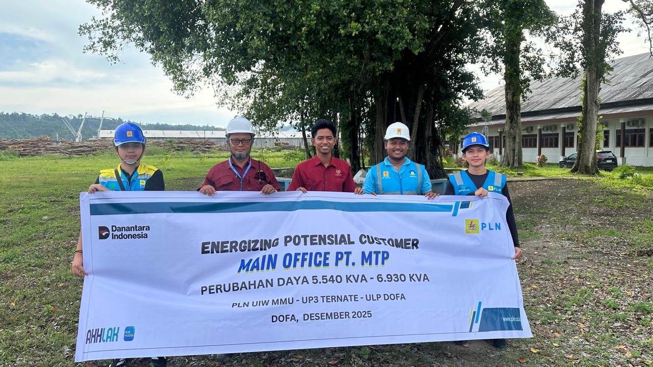 Pada Kamis (11/12/2025), PLN UIW MMU melalui Unit Pelaksana Pelayanan Pelanggan (UP3) Ternate sukses melakukan proses energizing untuk pelanggan kategori perubahan daya MAIN OFFICE PT MTP yang berlokasi di Desa Falabisahaya, Kecamatan Mangoli Utara, Kabupaten Kepulauan Sula.
