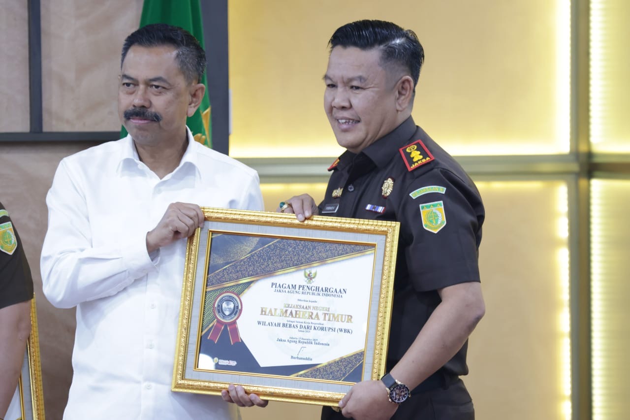 Tandaseru – Kejaksaan Negeri Halmahera Timur, Maluku Utara, berhasil menorehkan prestasi di kancah nasional dengan meraih penghargaan Zona Integritas menuju Wilayah Bebas dari Korupsi (WBK) Tahun 2025. Penghargaan bergengsi ini diterima langsung Kepala Kejari Haltim, Firdaus Affandi, dari Jaksa Agung Muda Tindak Pidana Umum, Asep Nana Mulyana, Rabu (17/12/2025).