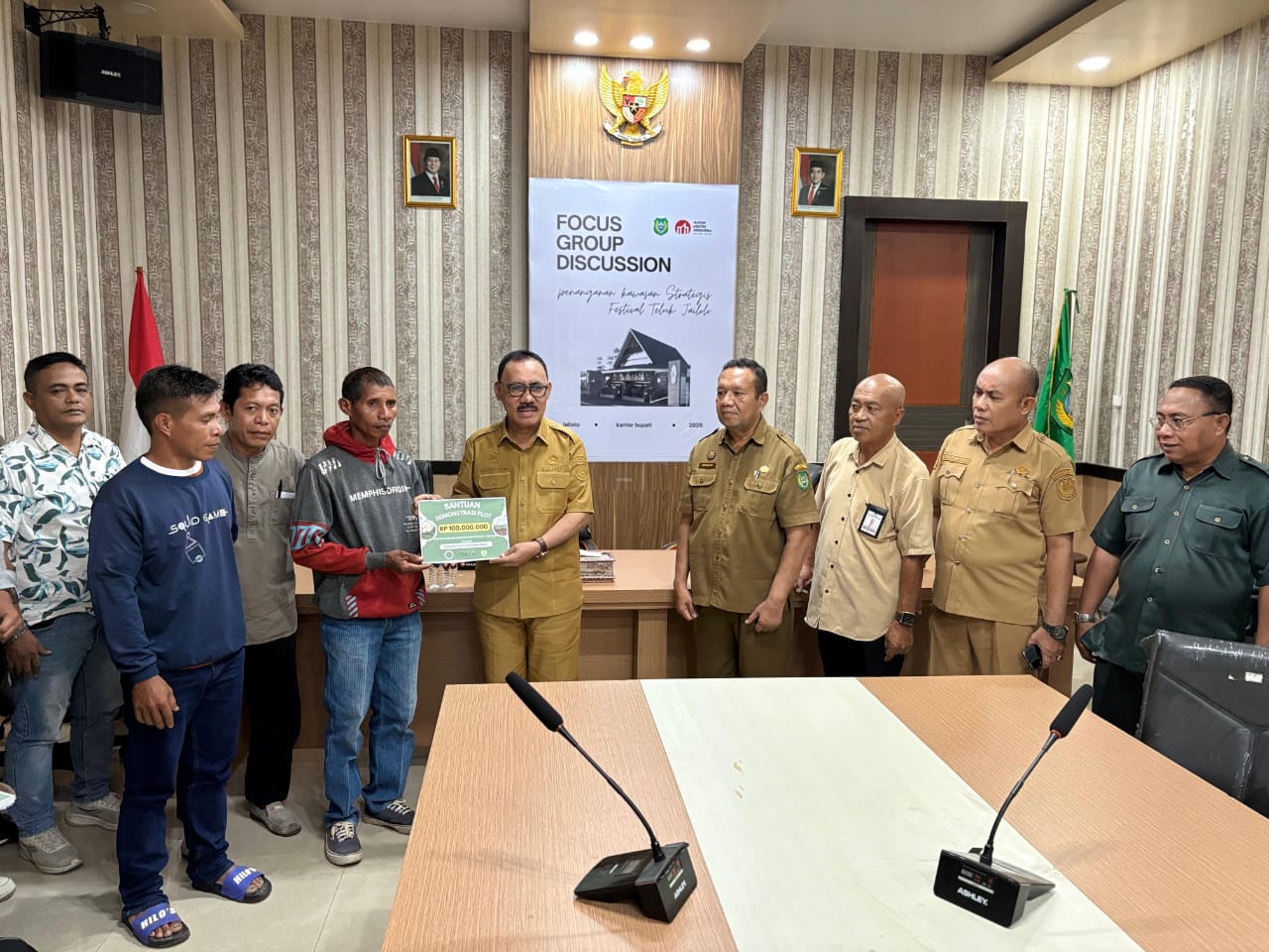 Tandaseru – Bupati Halmahera Barat, James Uang, menyerahkan secara simbolis bantuan dana demplot sebesar Rp100 juta kepada 41 desa penerima manfaat Program Transmigrasi Ekonomi Kampung Terpadu (TEKAD). Penyerahan bantuan ini berlangsung di ruang rapat Bupati pada Senin (29/12/2025).