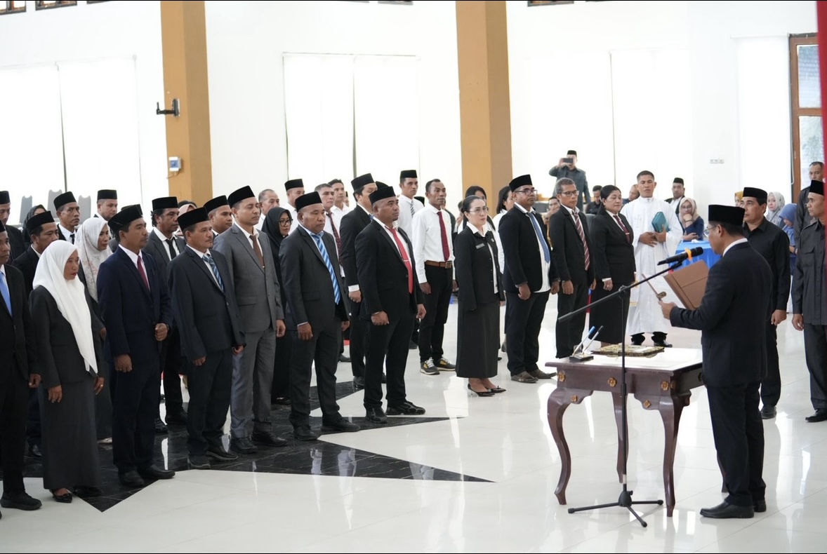 Tandaseru — Bupati Halmahera Timur, Maluku Utara, Ubaid Yakub, resmi melantik 77 pejabat di lingkup Pemerintah Kabupaten Halmahera Timur, Senin (12/1/2026). Pelantikan ini mencakup eselon II, III, dan IV sebagai upaya penyegaran birokrasi dan penguatan visi-misi daerah.
