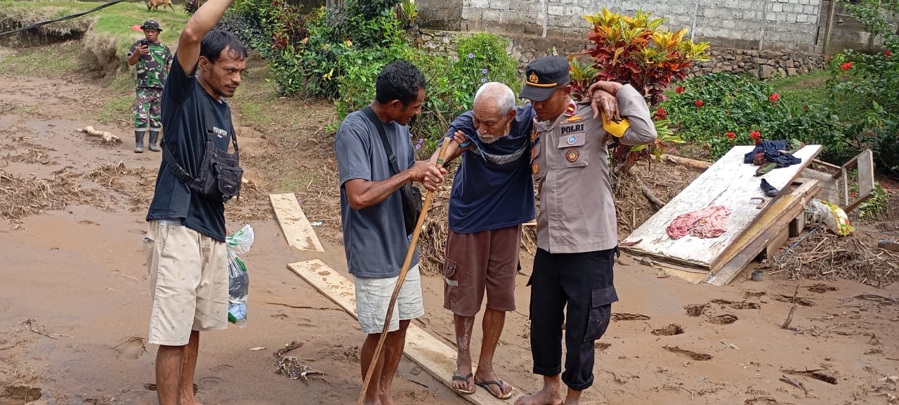 Tanpa ragu, para personel Polri membopong para lansia tersebut dengan penuh kehati-hatian menuju perahu. Sementara itu, seorang balita terlihat tenang di dekapan petugas, seolah merasakan perlindungan di tengah kecemasan bencana susulan yang menghantui desa mereka.