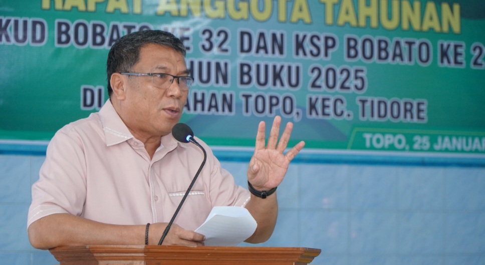 Tandaseru — Sekretaris Daerah Kota Tidore Kepulauan, Ismail Dukomalamo, resmi membuka Rapat Anggota Tahunan (RAT) KSP Bobato ke-21 dan KUD Bobato ke-32 Tahun Buku 2025. Kegiatan yang menjadi forum tertinggi organisasi ini berlangsung di Aula Kelurahan Topo, Kecamatan Tidore, Minggu (25/1/2026).
