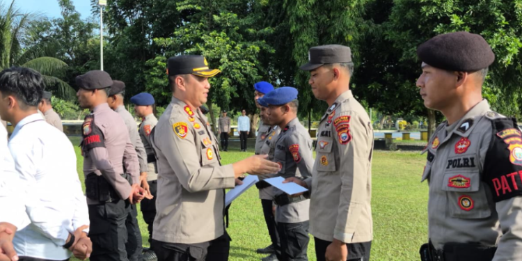 Tandaseru – Kapolres Halmahera Utara, Maluku Utara, AKBP Erlichson Pasaribu, memberikan penghargaan kepada 27 personel yang dinilai memiliki dedikasi tinggi dan prestasi luar biasa dalam menjalankan tugas. Upacara pemberian penghargaan ini berlangsung di Lapangan Apel Polres Halut, Senin (26/1/2026) pagi.