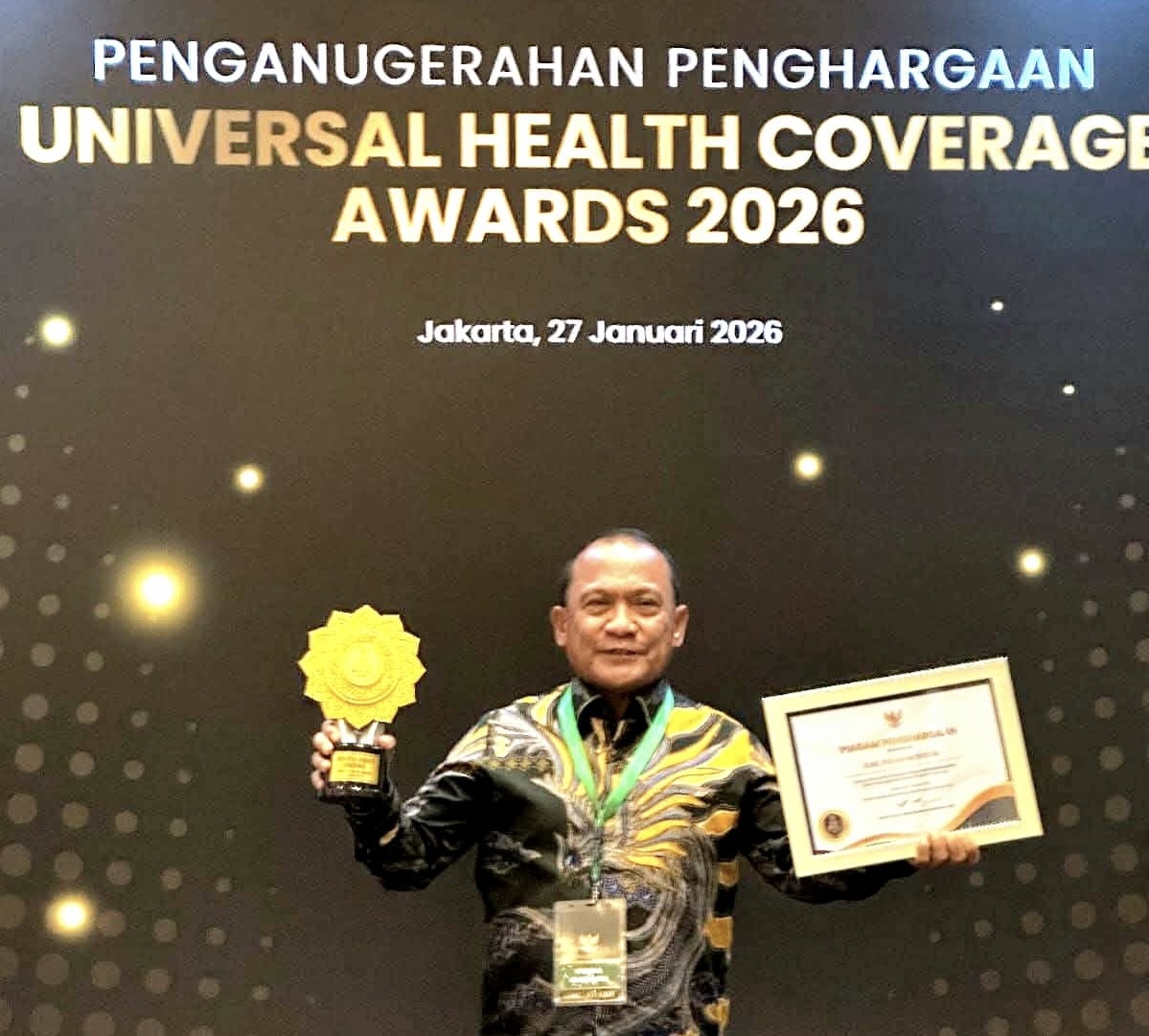 Tandaseru – Bupati Kabupaten Pulau Morotai, Maluku Utara, Rusli Sibua, resmi menerima penghargaan Universal Health Coverage (UHC) Award tahun 2026 yang diselenggarakan Kementerian Kesehatan RI. Penyerahan penghargaan ini berlangsung di ballroom JIEXPO Kemayoran, Jakarta Pusat, Selasa (27/1/2026).