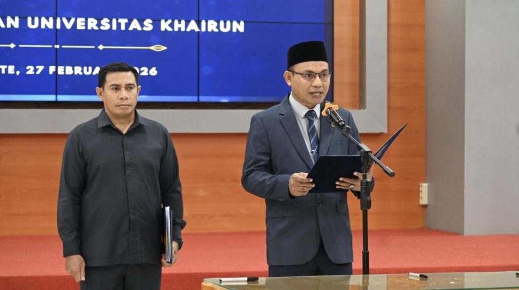 Tandaseru — Rektor Universitas Khairun (Unkhair) Ternate, Prof. Dr. Abdullah W. Jabid, SE., MM, kembali melakukan penyegaran struktur kepemimpinan dengan melantik lima pejabat di lingkungan kampus, Jumat (27/2/2026). Pelantikan berlangsung di Aula Nuku, Lantai IV Gedung Rektorat, Kampus II Unkhair, Gambesi, Ternate Selatan.