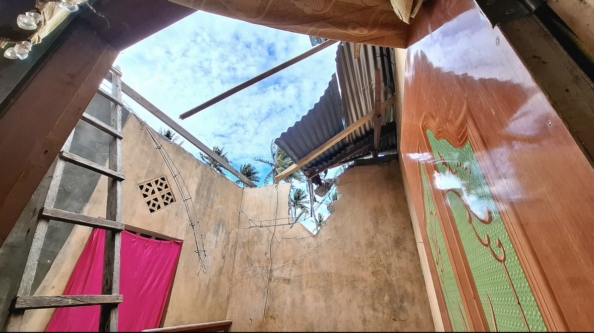 “Sekitar jam 10 malam angin kencang, tiba-tiba satu pohon kelapa tumbang dan menindis rumah kami, tepat di bagian kamar depan,” ungkap Ismu saat dikonfirmasi di lokasi kejadian.