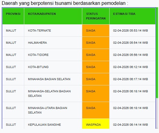 Berdasarkan pemutakhiran data Badan Meteorologi, Klimatologi, dan Geofisika (BMKG), gempa tersebut berkekuatan Magnitudo M7,6 dan berpotensi tsunami.