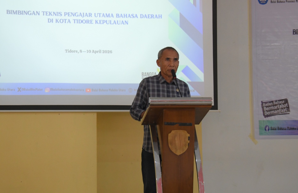 Tandaseru — Balai Bahasa Provinsi Maluku Utara resmi menyelenggarakan kegiatan Bimbingan Teknis (Bimtek) Pengajar Utama Bahasa Daerah di Aula Dinas Pendidikan Kota Tidore, Rabu (8/4/2026).