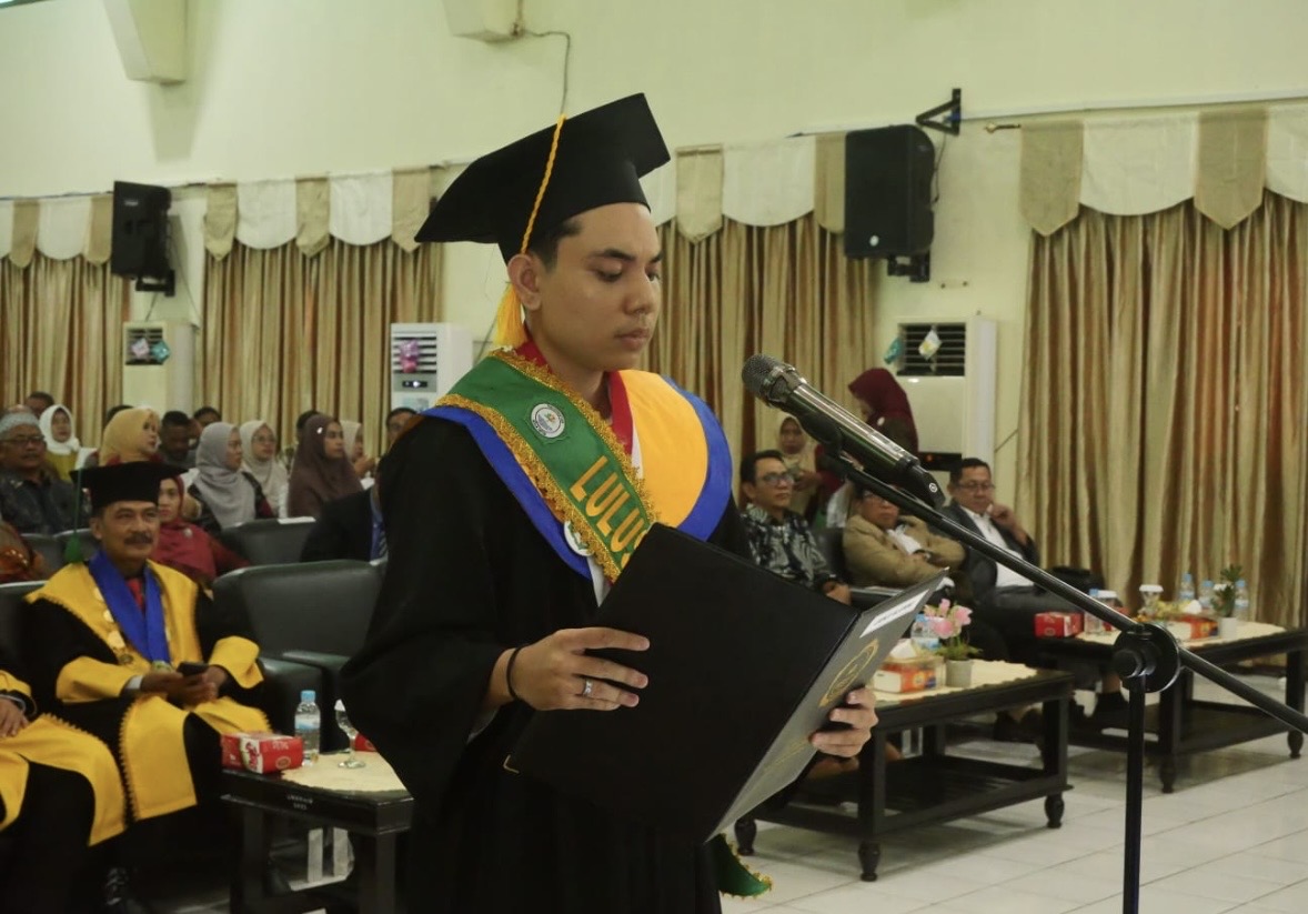 Namun, pada Sabtu pagi, 11 April 2026, kilau itu tidak datang dari permukaan logam di lapaknya, melainkan dari panggung Aula Nuku, Kampus I Universitas Khairun (Unkhair). Putranya, Adib Masraf Ilham, berdiri dengan toga hitam, menyandang predikat sebagai wisudawan terbaik Program Studi Teknik Mesin.