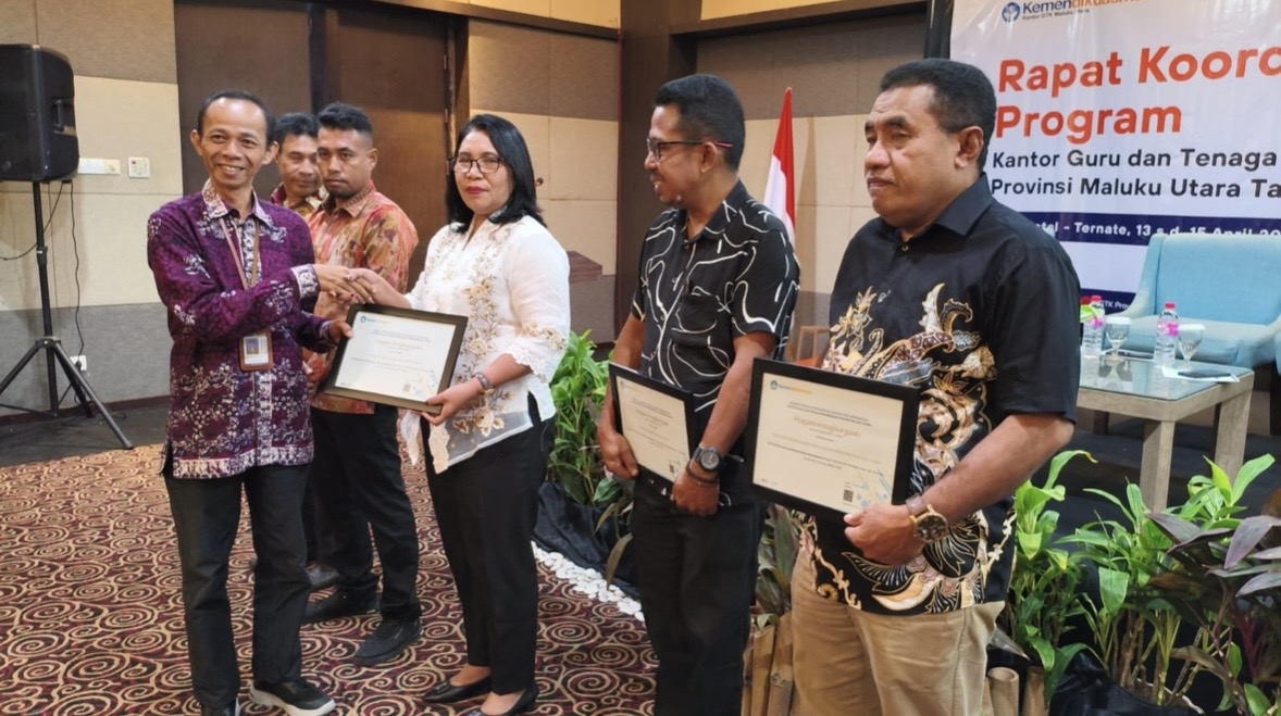 Penghargaan tersebut diserahkan langsung kepada Kepala Disdikbud Halmahera Barat, Rosberi Uang, dalam acara yang berlangsung di Bela Hotel, Ternate, Selasa (15/4/2026).