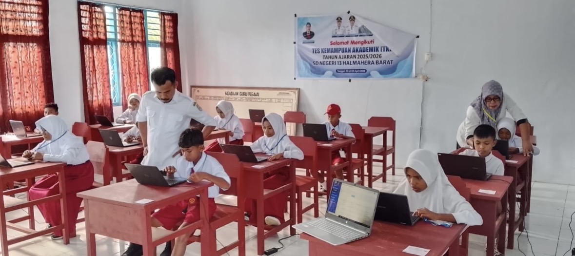 Tandaseru — 11 siswa SD Negeri 13 Halmahera Barat, Maluku Utara, terpaksa menumpang di SD Inpres 1 Halbar untuk melaksanakan Tes Kemampuan Akademik (TKA) tahun ajaran 2025/2026, Rabu (22/4/2026). Langkah ini diambil lantaran SDN 13 belum memiliki fasilitas laptop atau komputer yang memadai.