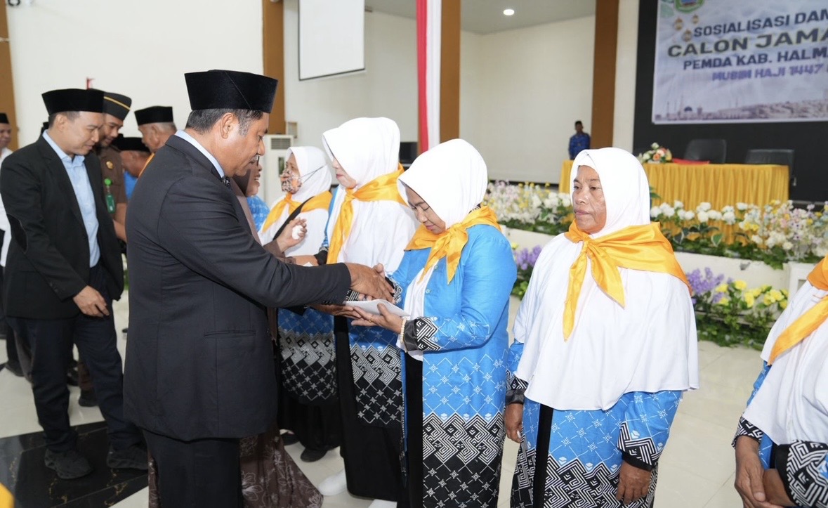 Tandaseru – Bupati Halmahera Timur, Maluku Utara, Ubaid Yakub, resmi membuka kegiatan Sosialisasi Kebijakan Penyelenggaraan Ibadah Haji sekaligus melepas keberangkatan sembilan orang Calon Jemaah Haji (CJH) musim haji 1447 H/2026 M. Acara pelepasan yang berlangsung khidmat tersebut dipusatkan di Aula Kantor Bupati, Senin (27/4/2026).