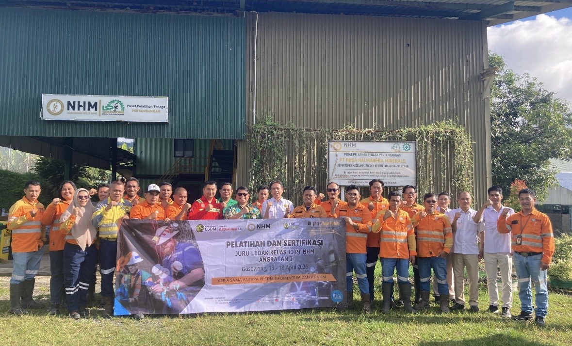 Tandaseru – Sebagai langkah strategis memitigasi risiko tinggi dalam operasional pertambangan, PT Nusa Halmahera Minerals (NHM) bersinergi dengan Lembaga Sertifikasi Profesi Pusat Pengembangan Sumber Daya Manusia Geologi, Mineral, dan Batubara (LSP PPSDM Geominerba) menggelar Diklat dan Penyegaran Uji Kompetensi Juru Ledak II di Gedung Safety Training, site Gosowong, Sabtu (13/04/2026).
