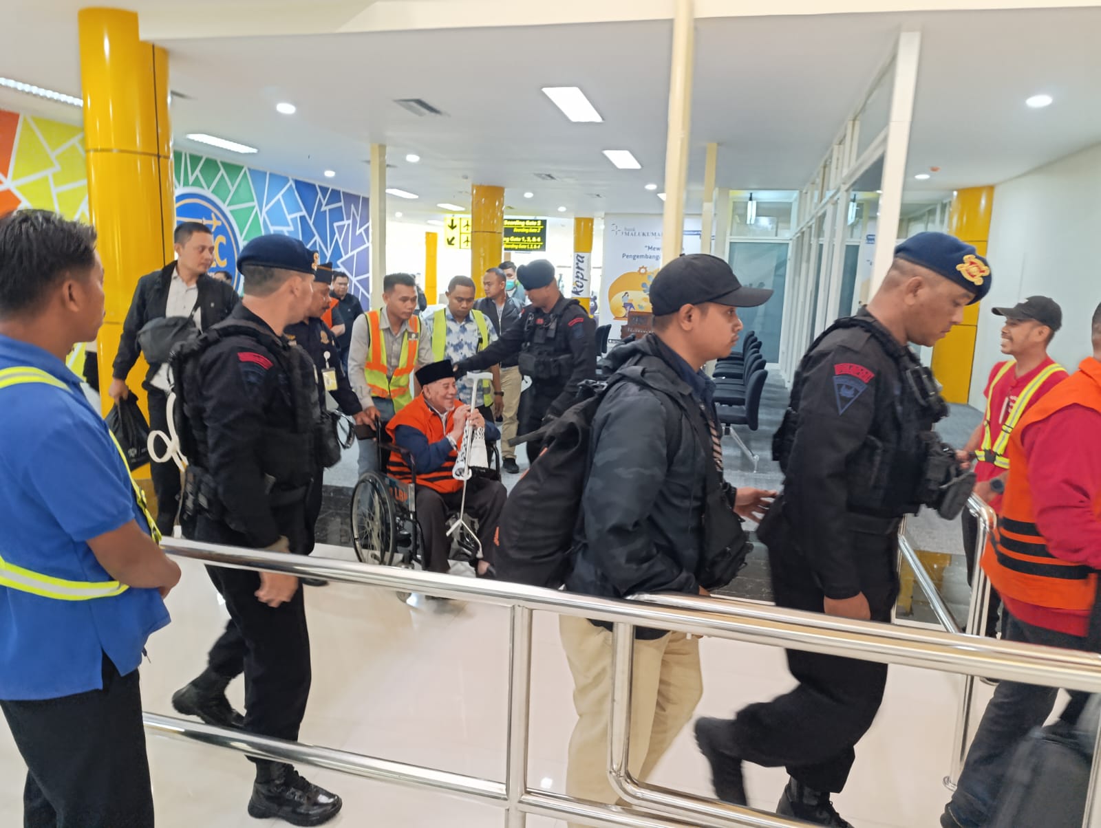 Dibantu Kursi Roda, Eks Gubernur Maluku Utara dan 2 Terdakwa Lain Tiba di Ternate