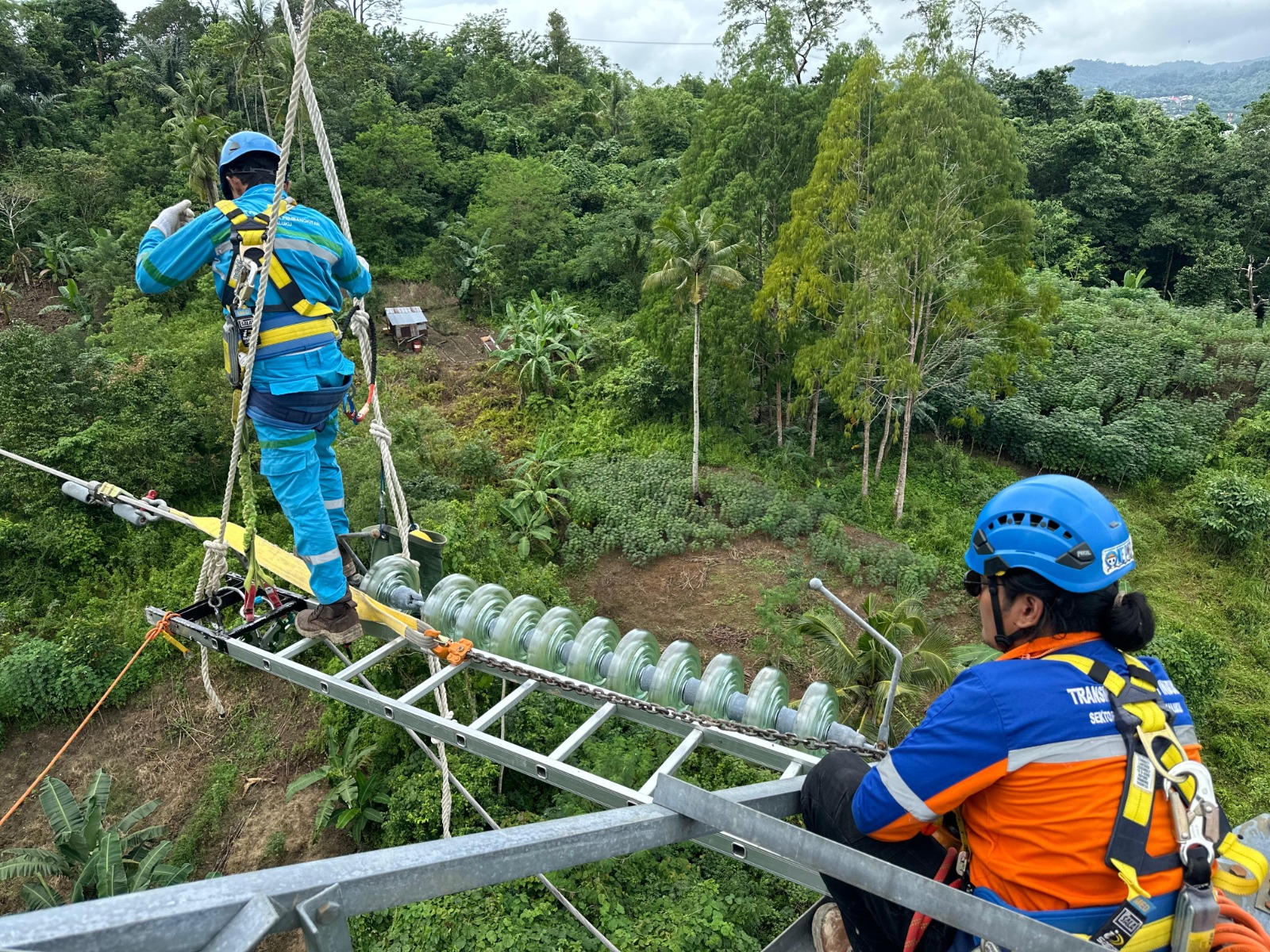 Tim UP3B Maluku Lakukan Pemeliharaan Isolator Tower 15 Line 2 Jurusan Passo-Wayame